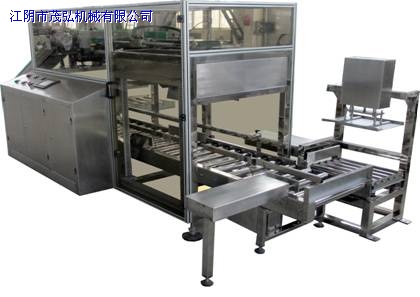 MHZX系列全自動裝箱機(jī)是茂弘機(jī)械有限公司依托國外先進(jìn)技術(shù)研制開發(fā)的新一代全自動高速裝箱機(jī)。該設(shè)備可根據(jù)裝箱要求將小袋物料整理后輸送到紙箱中,并按指定的數(shù)量、層次和排數(shù)裝好。機(jī)器具有自動從開箱機(jī)處取出紙質(zhì)箱坯,并能根據(jù)裝箱要求,能將產(chǎn)品自動分道理排,小袋物料通過疊層后自動裝進(jìn)紙箱中,并自動將裝滿物料的紙箱輸出機(jī)外等功能。設(shè)計(jì)新穎,適用范圍廣,可用于多種規(guī)格產(chǎn)品的裝箱,采用伺服系統(tǒng),定位準(zhǔn)確、動作穩(wěn)定,該機(jī)可廣泛應(yīng)用于化工、制鹽、食品等行業(yè)小袋物料的自動裝箱。
